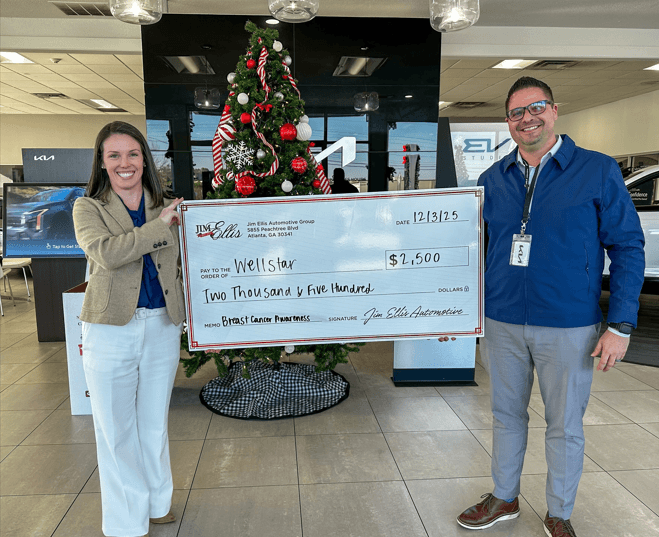 “It is an honor to receive a gift from Jim Ellis Kia of Kennesaw in support of our breast cancer initiatives. At Wellstar, we are proud to provide charitable support for programs such as our breast cancer vouchers, offering free mammograms for patients who cannot cover the cost. This program helps remove financial barriers so every woman can receive the care she needs. Thank you for supporting more services like this,” said Kathryn Jones, the regional development officer at Kennestone Hospital.