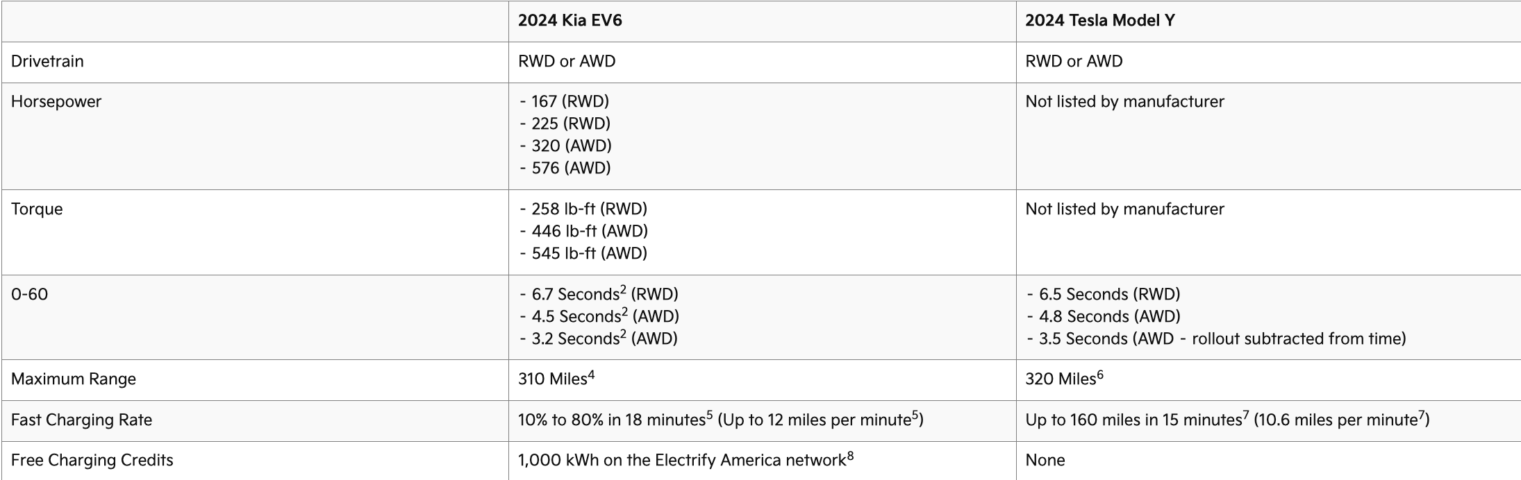 Kia EV6 vs. Tesla Model Y: Performance & Specs