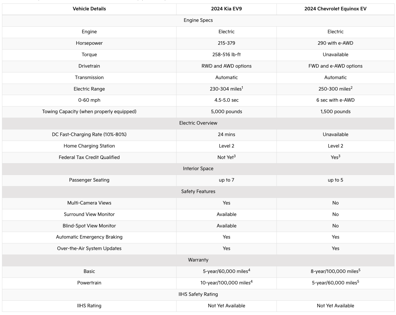 2024 Kia EV9 Vs. Chevy Equinox EV Configuration