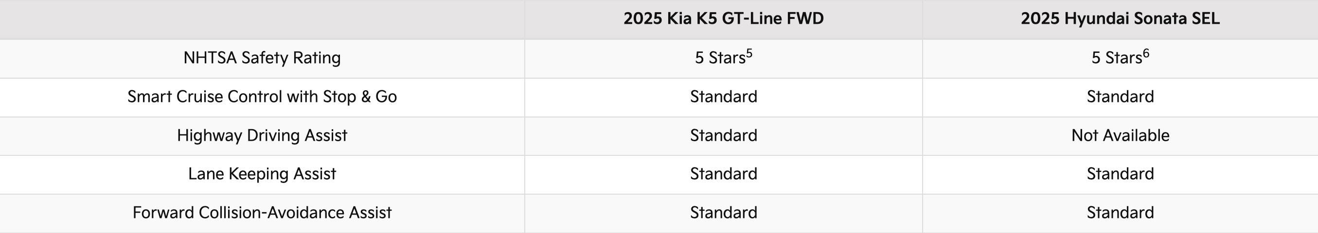 Kia K5 vs. Hyundai Sonata Safety and Features