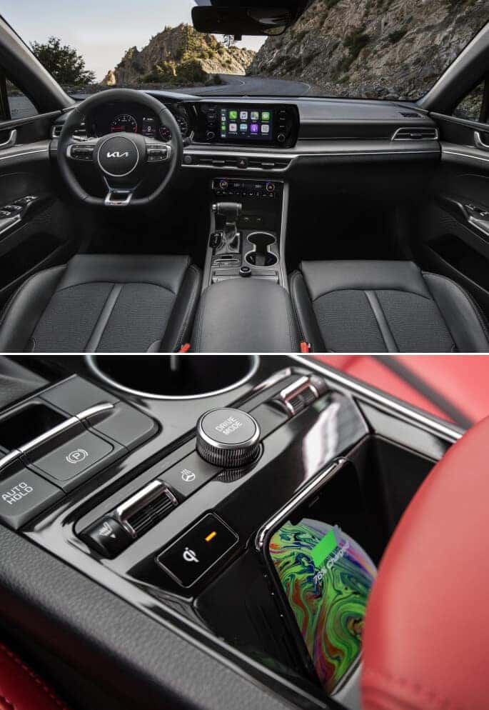 Front-wheel drive is standard on the new Kia K5 for sale, but an all-wheel-drive system is available. In base form, this midsize Kia car returns up to an EPA-estimated 27/37 MPG (City/Highway)1 rating, making it a highly efficient alternative to many other sedans and SUVs.